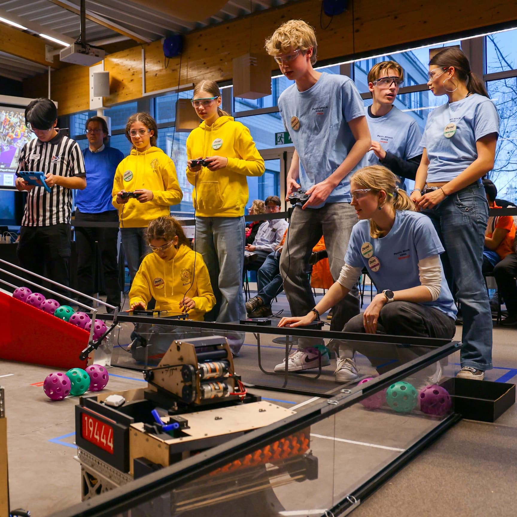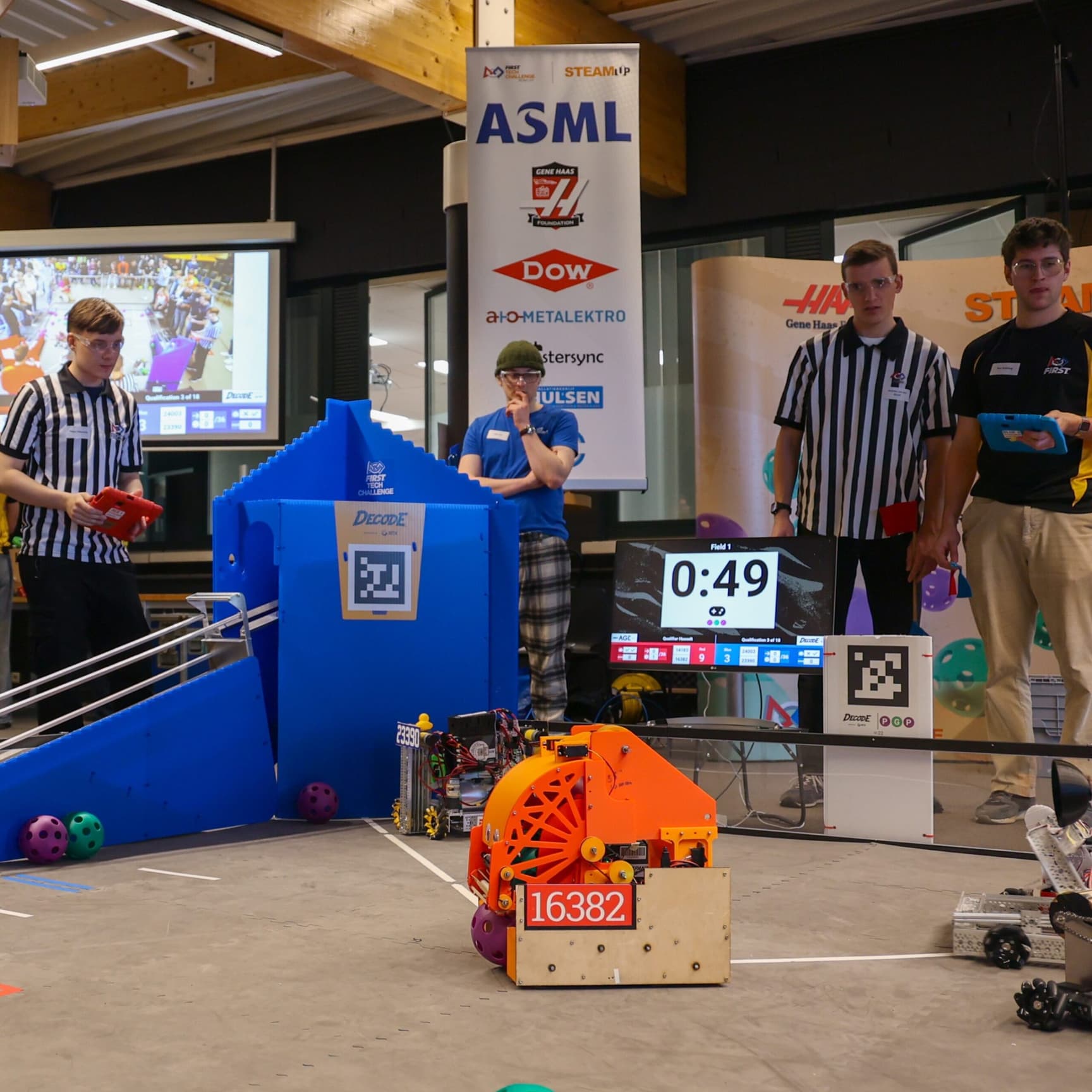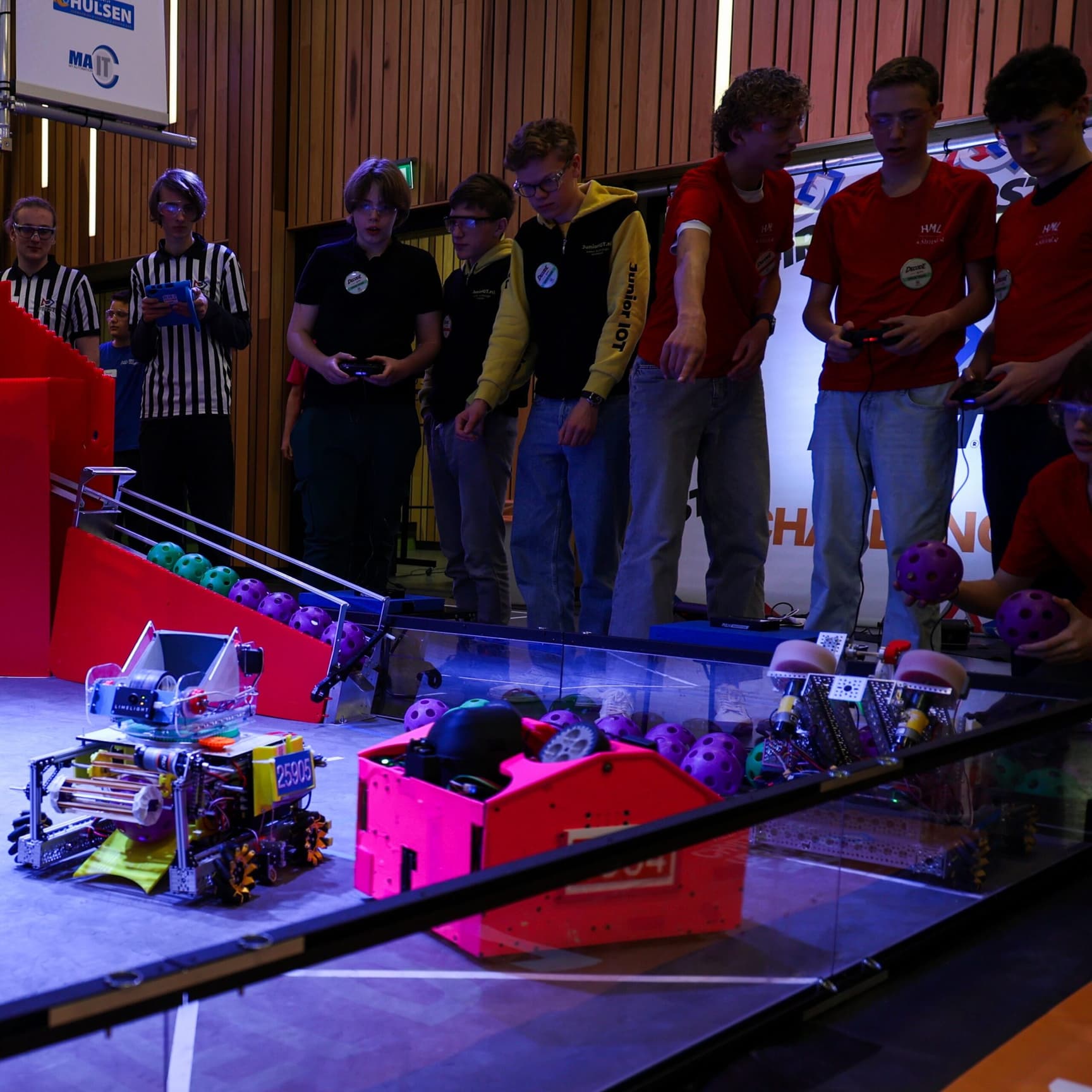 Tijdens de wedstrijd voeren de robots eerst zelfstandig opdrachten uit. Daarna nemen de studenten de besturing over in spannende teamduels tegen andere scholen.