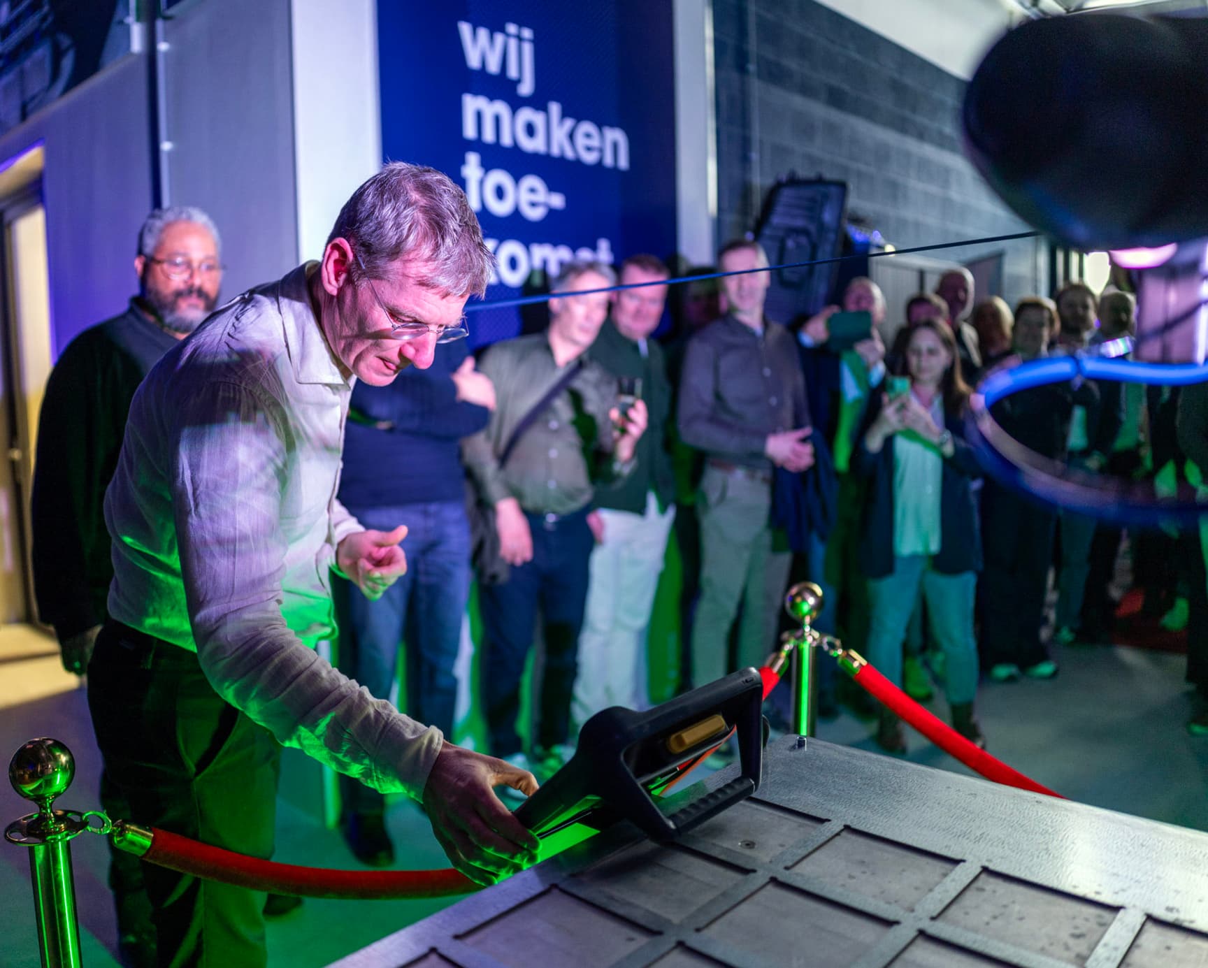 Om het tekort aan technisch talent aan te pakken, heeft Techniekcentrum|Brainport in Deurne afgelopen dinsdag een extra hal met CNC-verspaningsmachines officieel geopend. Dit gebeurde op bijzondere wijze door Paul van Nunen, directeur van Brainport Development. Hij activeerde in het bijzijn van een ruime honderd genodigden de cobot die met een gouden schaar het blauwe lint doorknipte om hiermee een officieel startsein te geven voor de ingebruikname van deze verspaningshal.